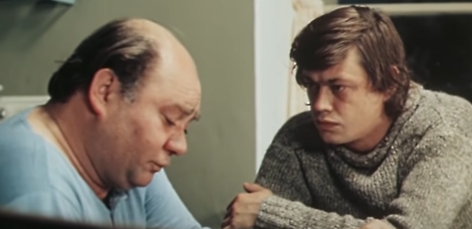 Сарафанов (Евгений Леонов) и Владимир (Николай Караченцов), кадр из фильма "Старший сын" (1975)