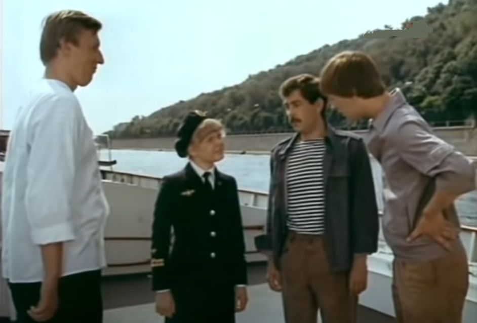 Настя не протестует. Кок тоже. Не, ничего такого, на что вы подумали, даже и намёка нет :) Просто ребята быстро находят общий язык, обнаруживают общее увлечение (самодеятельное пение) и начинают вдохновенно музицировать с привлечением других молодых ребят из экипажа.